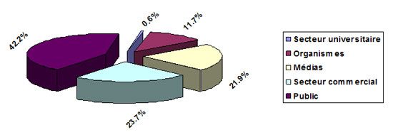 Le public a soumis le plus de demandes, suivi par les milieux d'affaires et les médias. Le tableau qui suit établit une comparaison avec les deux exercices précédents:
