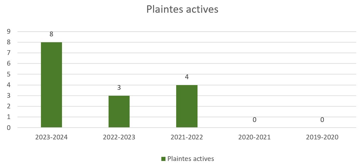 Graphique à barres affichant le nombre de plaintes actives, comme suit :